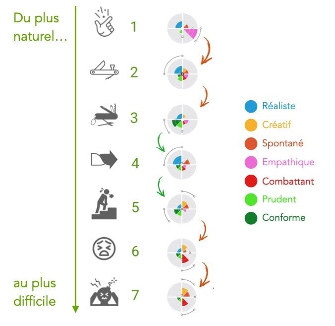 Intelli7 est une cartographie dynamique de nos ressources comportementales, véritable boussole pour « mesurer, comprendre, agir ».